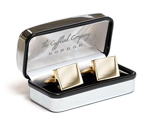 Gemelli placcati in oro di alta qualità con una faccia quadrata, splendidamente presentati in una lussuosa custodia cromata.