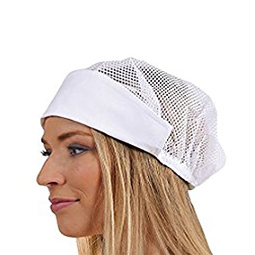 1 x Cuffia bianca da lavoro cappello donna Misura unica in cotone (cuffietta con rete)