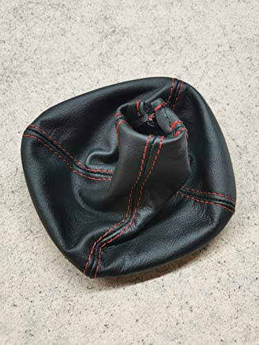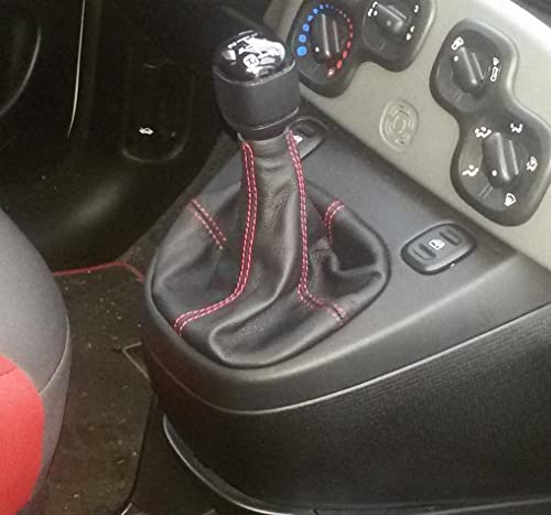 Cuffia leva cambio compatibile con Panda 319 vera pelle nera cucitura rossa
