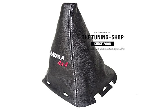 Ghetta per leva del cambio in pelle nera con cornice in plastica ricamata, per Nissan Navara Front 2005-2009