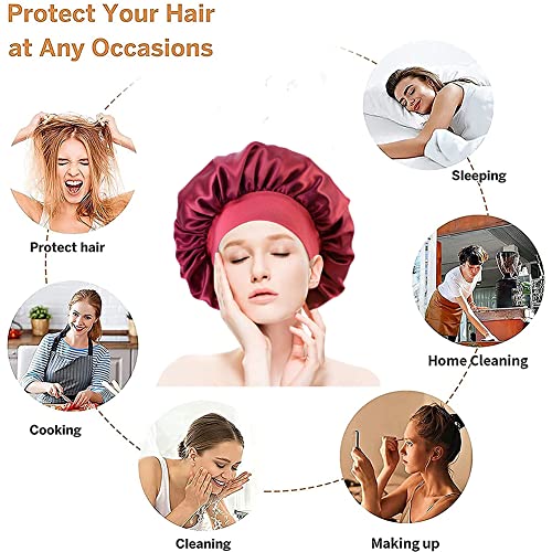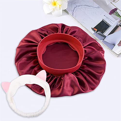 Cuffia Seta Capelli Ricci, Cuffia per Dormire in Raso a Doppio Strato, Cuffia Capelli Ricci Notte Bonnet, Cuffia Seta Capelli Ricci per Dormire, Protezione dei Capelli + Trucco Fascia per Donne