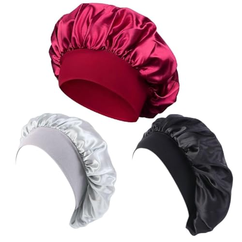 RGZ 3pcs Cuffia Seta Capelli Ricci, Cuffia Seta Cuffia da Notte Cuffie per Dormire Cappello da Notte per Donna Berretto da Notte Raso per Donna
