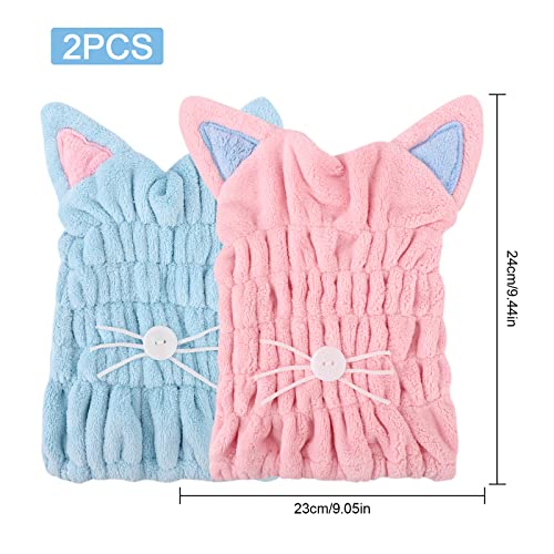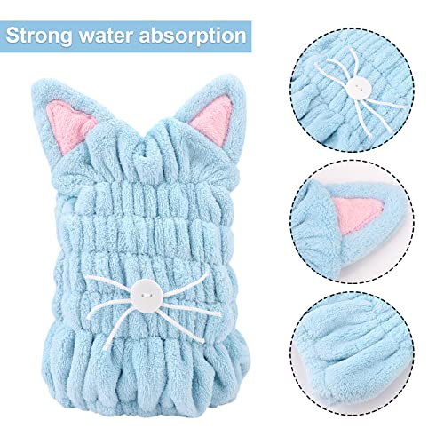 ►►Aspetto adorabile - La fascia per capelli ad asciugatura rapida ha un simpatico design a forma di orecchie da gatto e baffi di gatto sul davanti. L'asciugamano per capelli super assorbente sembra molto carino, vivido e realistico. L'asciugamano per capelli in pile corallo può essere piegato e riposto ed è molto adatto per donne, ragazze o bambini.