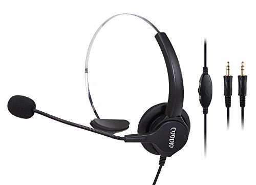 3,5 mm PC VOIP Cuffia, Coodio [Controllo del Volume] [Cancellazione del Rumore] [Proteine Paraorecchie] Monofonico Auricolare Con Microfono 3,5mm Per PC VOIP Chat Ufficio e Call Center Telefoni - HS3