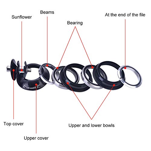 Set di Cuffia con Cuscinetto per Bici 44mm Completo Serie Sterzo in Lega di Alluminio per Biciclette (Nero)