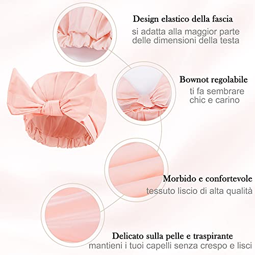 Cuffia da doccia - Cuffie da doccia impermeabile da donna Cuffie da bagno con fiocco regolabile di grandi dimensioni Riutilizzabili Elastica Cuffia doccia Spa Salon (Rosa)