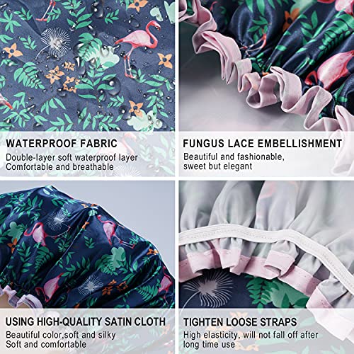 Aspetto alla moda - La nostra graziosa cuffia da doccia floreale contiene tre colori. Realizzata in raso, il design floreale con volant semplice e suggestivo è interessante e alla moda. Può abbinare i tuoi vestiti quotidiani e farti sembrare più bella. Se hai difficoltà a scegliere, questo cappuccio