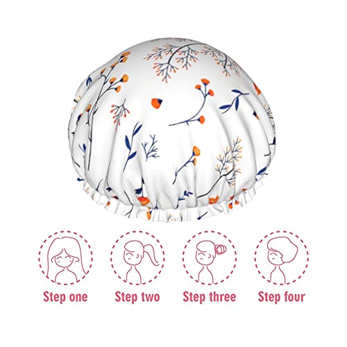 Cuffia da doccia Simpatici fiorellini su cuffia per capelli bianchi Cuffia da bagno riutilizzabile Cuffie da doccia impermeabili per donne di tutte le lunghezze di capelli