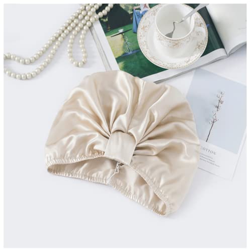 Cuffia da notte in seta, 100% seta di gelso per capelli da donna, liscia e morbida per le donne, confezione da 2 (beige)