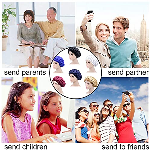 Cuffia da Notte in Raso, 6 Pezzi Cuffia per Doccia Impermeabile, Berretto Da Notte In Raso Berretto Da Notte Per Dormire Berretto Da Notte In Seta Da Donna Cappellino Elastico Bellezza Copertura