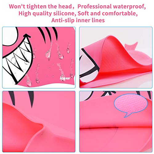 Ipow 2 PZ Cuffia da Nuoto Bambini Cuffia Piscina Bambino in Silicone atossico Antiscivolo, Impermeabile, Cura dei Capelli, Pesce Pink e Squalo Rosa