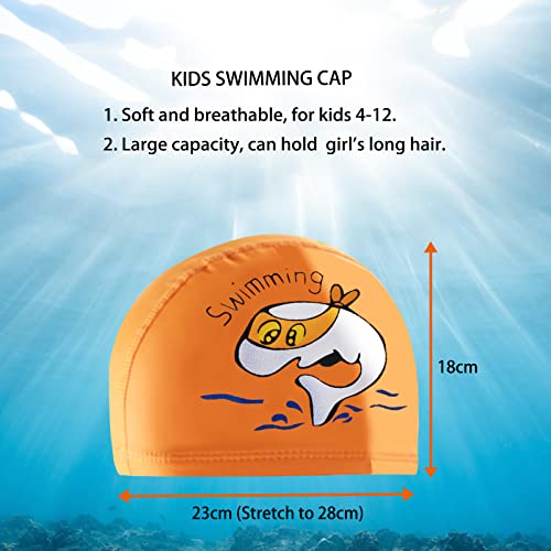 Cuffia piscina bambina e bambino, 2 pezzi, per bambini dai 6 ai 12 anni, comodo tessuto in PU (Blu & Arancio)