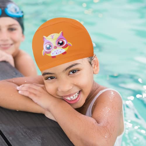 Cuffia Piscina per Bambini - Cuffia Nuoto per Bimbino Ragazzi Ragazze età 4-10 (Arancio, Gufo)