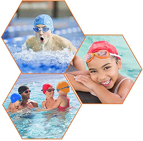 Confezione: 1 paio di orecchini a clip con naso galleggiante per garantire che l'acqua non entri nelle orecchie e nel naso. 2 x cuffia piscina lycra per donne, uomini, bambini e bambine. nero, rosa, blu, arancione, grazie ai colori chiari, il trasportatore può essere visto più facilmente quando galleggia in piscina o in acqua aperta