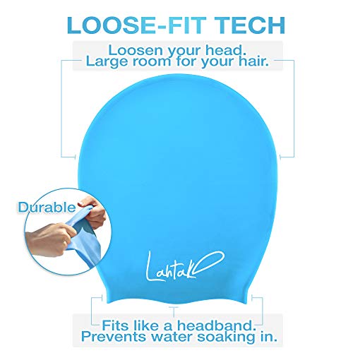 CAPELLI SEMPRE ASCIUTTI. Sebbene nessuna cuffia del mercato tiene I CAPELLI ASCIUTTI AL 100%, la nostra cuffia da nuoto Lahtak® se usata correttamente, ti permette di restare con i capelli asciutti LA MAGGIOR PARTE DELLE VOLTE. Puoi REGOLARE la VESTIBILITA' spingendo fuori l'aria dalla cuffia e ottenere una protezione perfetta.