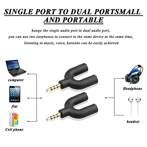Kit Cuffie Audio Stereo Splitter Adattatore 2 Vie U Splitter 3.5 mm Splitter Nero per Cuffie con Microfono per Cellulari, Computer, MP3, Tablet