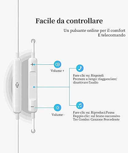 【Passa liberamente】: il cavo delle cuffie è dotato di microfono e controller integrati. Un pulsante multifunzione consente di rispondere / terminare una chiamata, riprodurre / mettere in pausa, saltare e riprodurre brani con le cuffie. Non c'è bisogno di estrarre il telefono. Il microfono integrato ti consente di effettuare chiamate in vivavoce.