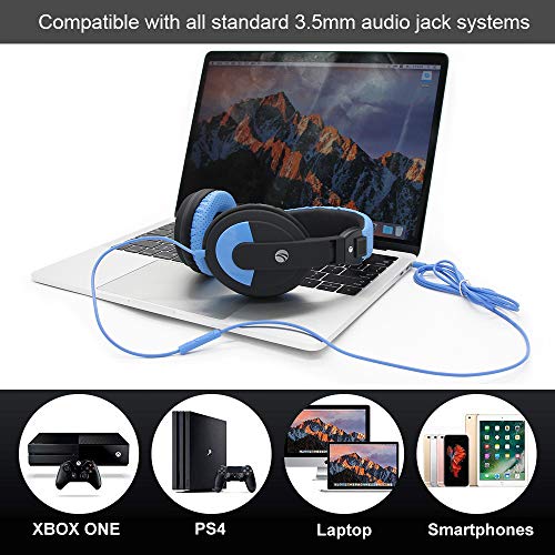 VCOM Cuffie Auricolari con Microfono, Cuffie Scolastiche Stereo Cablate Auricolari Portatili Leggeri Jack da 3,5 mm Compatibile per iPad Kindle Computer Portatili PS4 Xbox One MP4 Smartphone (Blu)