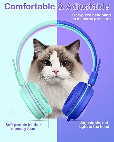 Cuffie per bambini, microfono, set di 2, cuffie cablate per bambini, 91 dB, limite di volume, splitter di condivisione, viaggi, scuola online, per bambini e ragazzi