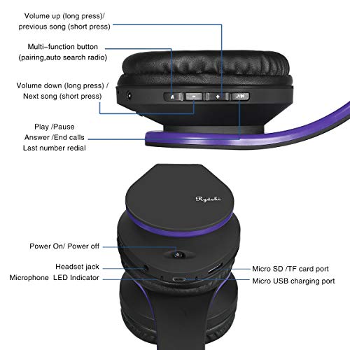 Chiamate in vivavoce e microfono integrato: le cuffie Bluetooth Rydohi offrono una connessione rapida e stabile con i dispositivi abilitati Bluetooth come telefoni cellulari, tablet, PC, TV entro 10 metri, con un microfono integrato di alta qualità per chiamate in vivavoce, comodo per liberarti dai cavi. (solo per la modalità wireless).