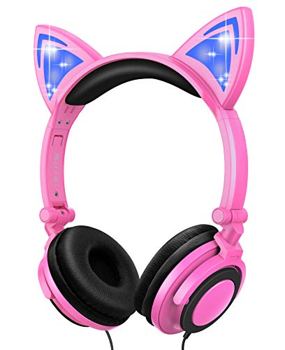 Cuffie per Bambini, Sunvito Orecchio sopra con orecchie di gatto incandescente a LED, Cuffie Bambina Pieghevoli Cablate, 85dB Volume, cuffie gatto per ragazzo (Rosse)