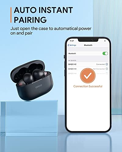 ♫ 【Qualcomm 3040 e Bluetooth V5.2】 Gli auricolari Bluetooth wireless QHQO H2 adottano l'ultimo chip Qualcomm QCC3040 integrato e la tecnologia Bluetooth 5.2, fornendo un importante aggiornamento con trasmissione Bluetooth ottimizzata, connessione senza errori e suono migliorato per offrirti un'esperienza di erogazione del suono senza precedenti.