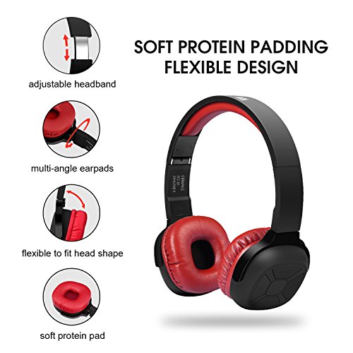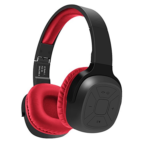New Bee Cuffie Bluetooth On Ear, Auricolare Bluetooth 4.1 Cuffie Bluetooth Wireless Auricolare Pieghevole Auricolare Sport Auricolare con Microfono, 3.5mm AUX per Android - Rosso