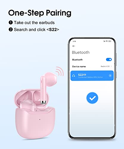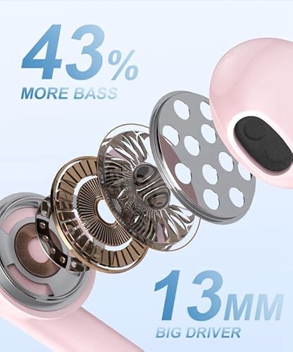 Cuffie Bluetooth, Auricolari Bluetooth 5.3, Piccolo e Confortevole, CVC8.0 Cuffie Wireless, 30H con Mini Custodia di Ricarica, Ricarica Rapida USB-C, Bassi Profondi, IPX7 Impermeabile (Rosa)