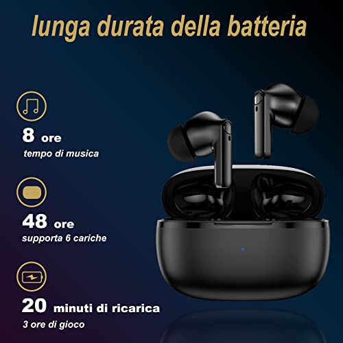 Cuffie Bluetooth, Auricolari Bluetooth per 56 Ore di Riproduzione, Cuffie Wireless HIFI Stereo con Microfono HD, Cuffiette Bluetooth Sportive Impermeabili IPX8, Compatibili con iOS e Android