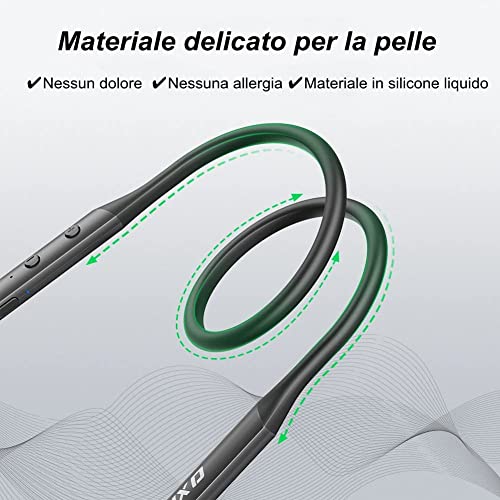 【Design ideale per l'esercizio fisico】Queste cuffie bluetooth con filo sono progettate appositamente per l'esercizio fisico senza cadere. L'archetto delle cuffie sportive è realizzato in silicone liquido senza dolore e senza allergie per un uso prolungato.