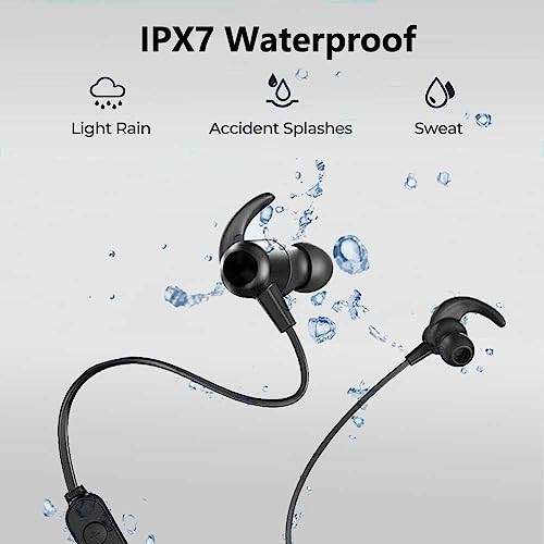 Cuffie Bluetooth, Auricolari Bluetooth Senza Fili, Auricolari Bluetooth con Microfono, 20 Ore di Tempo di Utilizzo, IPX7 Impermeabili, Cuffie Bluetooth Sport per Corsa (Nero)