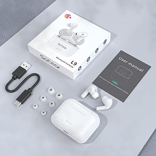 Cuffie Bluetooth 5.1 Auricolari Wireless in Ear Con Microfono,Hi-Fi Stereo,Durata 38 Ore,IPX5 Impermeabilie,Associazione Automatica,Controllo Touch per iPhone Samsung Huawei Xiaomi Sony bianco