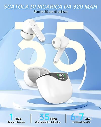 Cuffie Bluetooth, Auricolari Bluetooth 5.2, Cuffie Wireless Bluetooth con HD Microfono, HiFi Stereo Cuffiette, IPX7 Impermeabili Cuffiette Bluetooth Sport, 35 Ore di Riproduzione con Controllo Touch