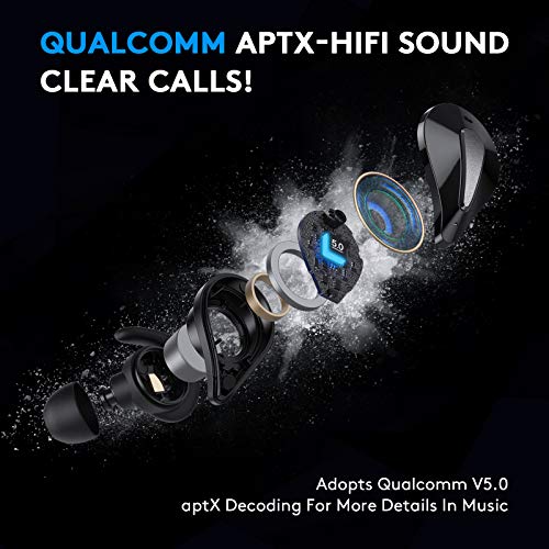 Cuffie Bluetooth, Auricolari Wireless 5.0 IPX8, Auricolari Stereo True Wireless Aptx Hi-Fi con Ricarica Rapida USB-C e ControlloTouch per Tutti Gli Smartphone