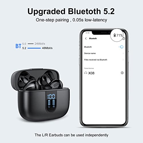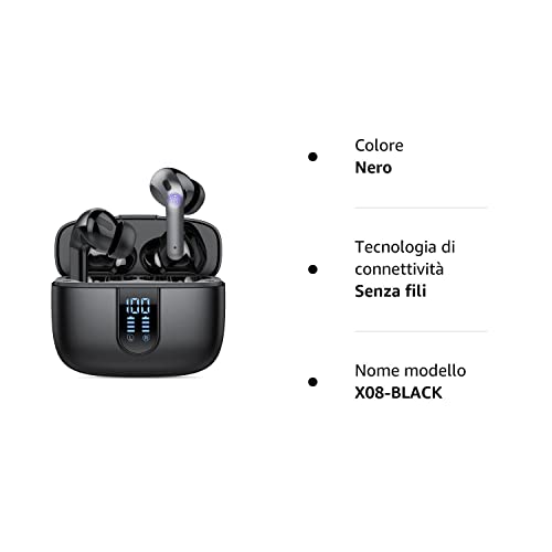 Cuffie Bluetooth, 2023 Auricolari Bluetooth 5.3 Cuffie Wireless HiFi Stereo con 4 HD Mic, ENC Riduzione del Rumore, 40 Ore Cuffie Senza Fili con LED Display/IP7 Impermeabili per iOS Android (Nero)