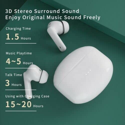 LUNGA DURATA: La capacità delle cuffie da 40 mAh e una capacità del contenitore di ricarica da 400 mAh, gli auricolari durano 5 ore per l'uso normale e il contenitore di ricarica dura 20 ore per 3 ricariche, il che ti offre un'esperienza eccellente di lunga durata.