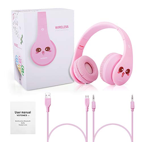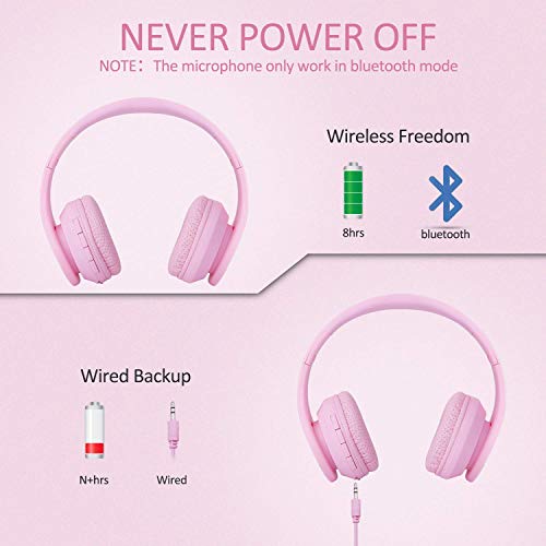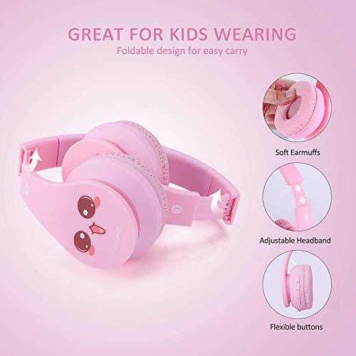 Cuffie Bluetooth per bambini con volume limitato, Auricolari regolabili pieghevoli stereo/cablato, Cuffie auricolari leggere con microfono Isolamento acustico e design per ragazze Cartoon - Rosa