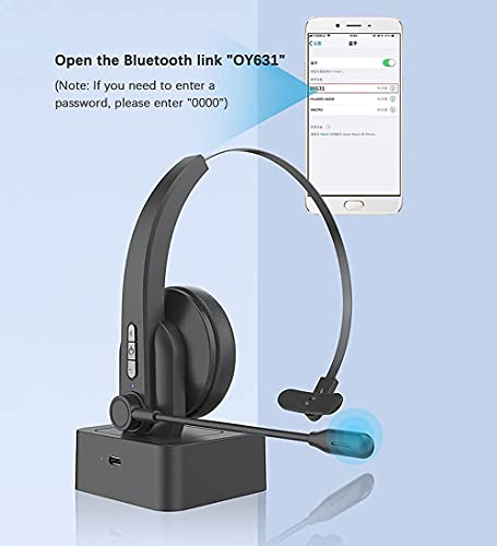 XPMY Cuffie Bluetooth con Microfono per PC Computer Telefono, Bluetooth V5.0 Cuffie Antirumore con dock di ricarica, Cuffie Wireless per Camionisti/Call Center/Skype/Chat/Conference