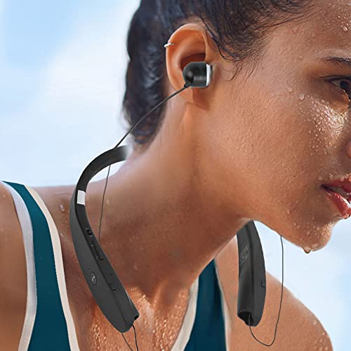 Cuffie Bluetooth 5.0, Cuffie Pieghevoli con Archetto da Collo con Auricolari Retrattili, Auricolari Stereo Wireless con Cancellazione del Rumore per Allenamento, Sport, Guida
