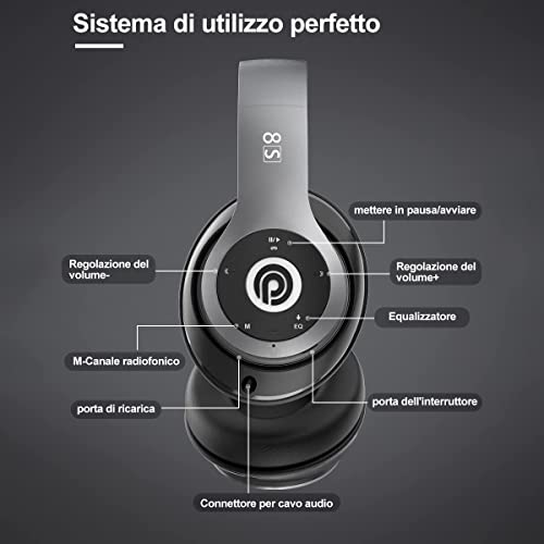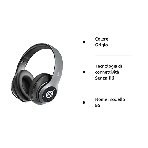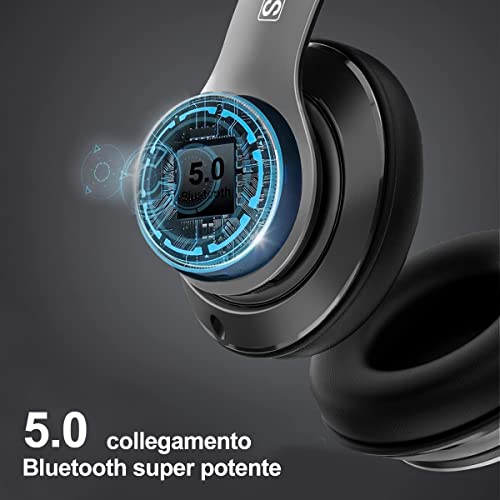 8s Cuffie Bluetooth, Cuffie Over Ear con 50 ore di Riproduzione, Cuffie Bluetooth 5.0 Wireless con Microfono CVC 8.0, Cuffie Audio Hi-Fi Padiglione Super Morbido per Corso Online,TV,Cellullari,PC