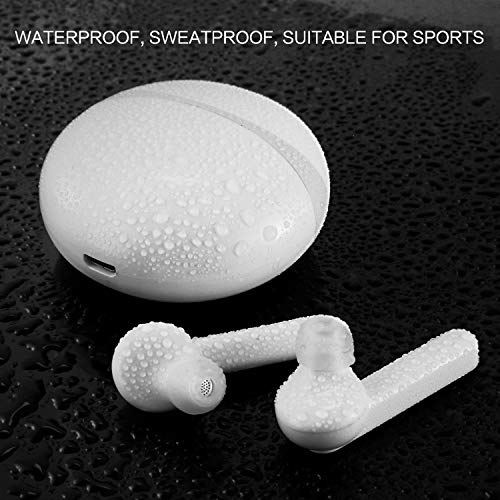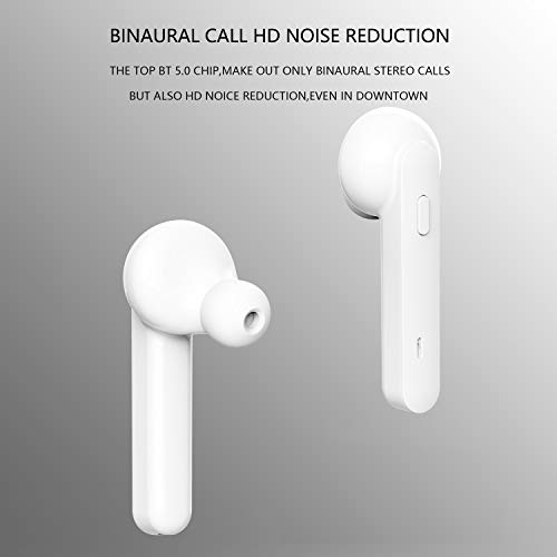 Cuffie Bluetooth 5.0 Senza Fili, MUS Pro Auricolari Wireless Portatile con Custodia da Ricarica e Microfono Incorporato, Suono Stereo 5H per iPhone iPad Android Smartphone - Bianco