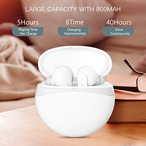 Goditi la musica tutto il giorno: questo auricolare Bluetooth ha una grande batteria al litio integrata. Gli auricolari sono 50 mAh, fino a 5 ore. La batteria della custodia di ricarica è di 800 mAh, può caricare l'auricolare 8 volte dopo la carica completa. È il miglior compagno quando si esce, può giocare per 40 ore senza interruzioni, in modo da immergersi nella meravigliosa musica tutto il giorno.