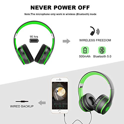 [ Cuffie wireless e cablate ] Lunghi tempi di funzionamento: la batteria ricaricabile integrata da 500 mAh, per garantire fino a 16 ore di riproduzione musicale. inoltre puoi passare alla modalità cablata con cavo audio da 3,5 mm (incluso), se la batteria è scarica e goditi la tua musica NON-STOP.Con la radio FM e il supporto della riproduzione di schede TF, puoi ascoltare la radio FM con le cuffie, puoi anche mettere la scheda TF in modalità MP3 sulle cuffie per ascoltare la musica.