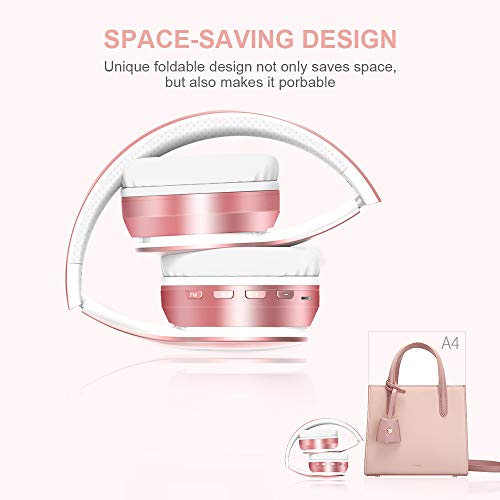 Cuffie Bluetooth 5.0 Senza Fili, Sunvito Pieghevole Auricolari con Mic, Lettore MP3, Radio FM, Wireless e Cuffie Cablate, Cuffie Over Ear (Rosa)