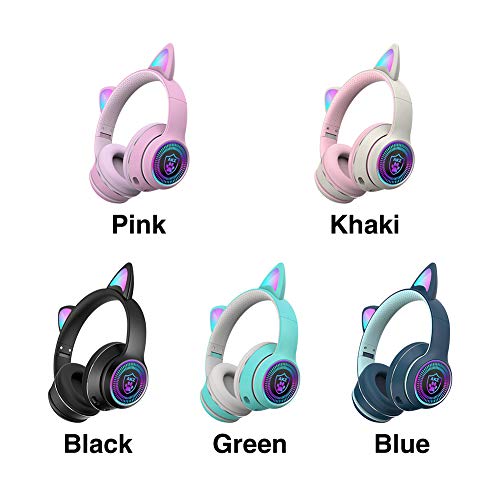 Cuffie Bluetooth sopra l'orecchio, cuffie wireless per bambini, ragazze e gatti, con luce a LED, con cancellazione del rumore pieghevole sopra l'orecchio, senza fili, per aereo/viaggio/casa