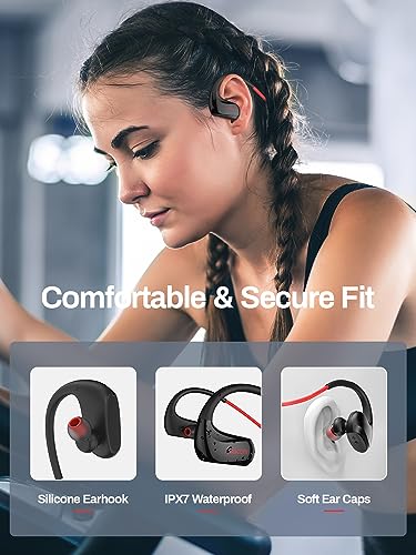 Cuffie Bluetooth Sport, Auricolari In-Ear Wireless Bluetooth 5.3 con Microfono, HiFi Stereo, IPX7 Impermeabile Cuffie Senza Fili Cancellazione Rumore, 20 Ore Cuffiette Bluetooth per Corsa, Fitness