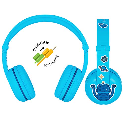 CARATTERISTICHE PRINCIPALI: ore di autonomia wireless per imparare giocando. 4 impostazioni volume regolabili in base all'età del bambino e all'ambiente: 75 dB bambini piccoli, 85 dB per i più grandi e 94 dB per il viaggio e StudyMode. StudyMode migliora i contenuti vocali e parlati per aiutare i bambini ad ascoltare e imparare. Modalità wireless mediante Bluetooth fino a 14 ore di autonomia con 1 ricarica. Funzionano senza batteria con il cavo backup BuddyCable. Fascia pieghevole salvazio.
