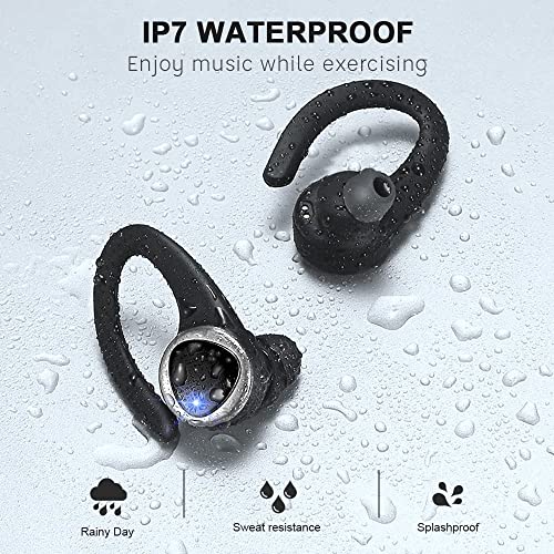 IP7 Impermeabile e Vestibilità Comoda: Le auricolari Bluetooth wireless soddisfano il grado di impermeabilità IP7. Sono impermeabili e resistenti al sudore. Gli auricolari Bluetooth wireless non sono solo dotati di ganci esclusivi e combina ergonomia che l'auricolare si adatti perfettamente all'orecchio. Ideale per sport, allenamento, corsa, jogging, ascolto di musica.