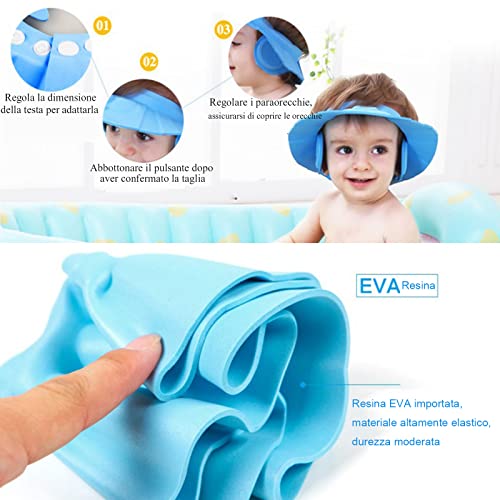 La cuffia per la doccia per bambini protegge gli occhi, la bocca e il naso del tuo bambino o bambino da shampoo e acqua. Il tuo bambino sarà in grado di aprire gli occhi e respirare liberamente mentre si lava i capelli. Lascia che tuo figlio si lavi i capelli.