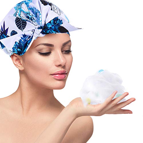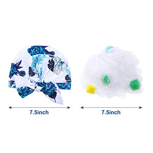 Cuffie da Doccia Riutilizzabile Impermeabile Doccia Capelli Cuffie Donne Bambino Nodo Doccia Cappello con Spugne Bagno a Maglia (Floreale)